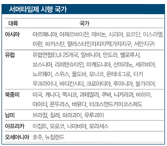 ÇöÀç À¯·´¿¬ÇÕ(EU) 25°³±¹À» ºñ·ÔÇØ ¹Ì±¹, ij³ª´Ù, ½ºÀ§½º, È£ÁÖ µî Àü ¼¼°è 74°³±¹ÀÌ ¼¸ÓŸÀÓÁ¦¸¦ ½ÃÇàÇϰí ÀÖ´Ù. ƯÈ÷ °æÁ¦Çù·Â°³¹ß±â±¸(OECD) °¡ÀÔ ±¹°¡ 30°³±¹ Áß¿¡¼´Â Çѱ¹, ÀϺ», ¾ÆÀ̽½¶õµå¸¦ Á¦¿ÜÇÑ ´ëºÎºÐÀÇ ±¹°¡°¡ À̸¦ ½Ç½ÃÇϰí ÀÖ´Ù.