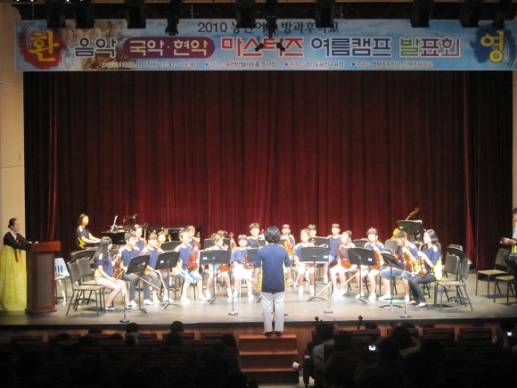 ÇÑÆí, Áö³ 8¿ù 11ÀÏ ´ÊÀº 5½Ã 30ºÐºÎÅÍ ÁøÇàµÈ ¿©¸§¹æÇÐ ½Ç·ÂÇâ»ó ¿¬ÁÖȸ¿¡´Â 100¿© ¸íÀÇ Çкθð¿Í ±³À°Ã» °ü°èÀÚ, ½Ãû °ü°èÀÚµéÀÌ Âü¼®ÇÑ °¡¿îµ¥ ¼º´ëÇÏ°Ô ¿·È´Ù. ±×µ¿¾È ¸àÅ並 ¸Ã¾ÆÁØ °´¿øÀÇ ¿¬ÁÖ¿Í ÇлýµéÀÇ ¿¬ÁÖ·Î ÀÌ·ïÁ³À¸¸ç, 1ºÎ Çö¾Ç¸¶½ºÅÍ °úÁ¤, 2ºÎ ±¹¾Ç¸¶½ºÅÍ °úÁ¤ ¿¬ÁÖȸ·Î ÁøÇàµÆ´Ù. ¹ÙÀ̿ø°¹Ý, ÿ·Î¹Ý, ¹ÙÀ̿ø° µ¶ÁÖ ¹× ÿ·Î µ¶ÁÖ, Çö¾Ç Æ®¸®¿À, Àüü ÇÕÁÖ·Î 1ºÎ°¡ ÁøÇàµÆÀ¸¸ç, 2ºÎ¿¡¼´Â dz¹°°ø¿¬, °¡¾ß±Ý º´Ã¢, ±¹¾Ç °üÇö¾Ç ÇÕÁÖ µîÀÇ ¼ø¼·Î ÁøÇàµÆ´Ù. °îÀÌ ¿¬ÁÖ µÉ ¶§ ¸¶´Ù °¨µ¿ÀÇ ¹Ú¼ö°¡ ¿ì·¹Ã³·³ ¿¬ÁÖȸÀåÀ» ¿ï·Á ÆÛÁ® ³ª°¬À¸¸ç ‘ºê¶óº¸’, ‘¾ó¾¾±¸’ µîÀÇ ÃßÀÓ»õµµ ¿©±âÀú±â¼ Æ¢¾î³ª¿Ô´Ù.